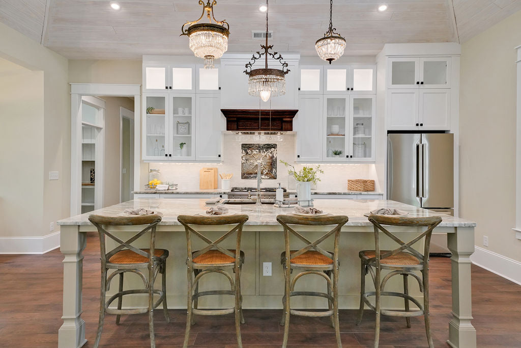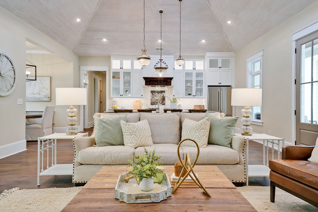 Talk about a vaulted ceiling! Vahue Custom Homes made this mom n' pop lumber supplier proud. They truly did build something special when they built this Kerr Landing custom home using our D-Grade Southern Yellow Pine Shiplap.